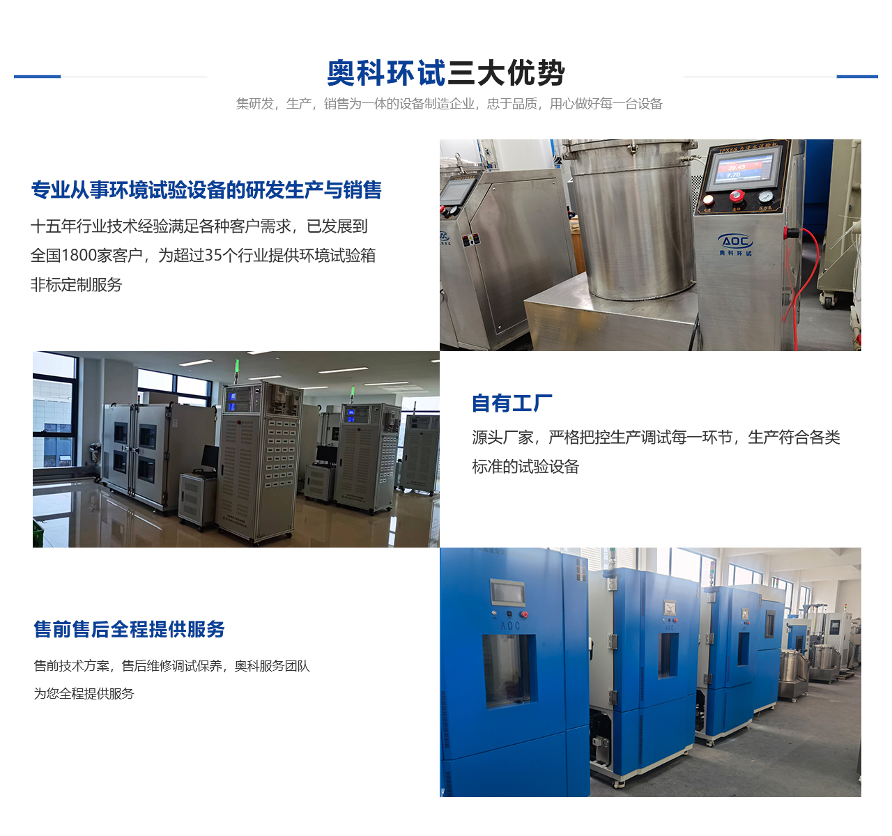 安徽奧科試驗設(shè)備有限公司隸屬于杭州奧科環(huán)境試驗設(shè)備有限公司直屬分公司,是一家從事各種試驗設(shè)備研發(fā)、生產(chǎn)與銷售一體的技術(shù)單位。總公司擁有強大的技術(shù)團隊及科學(xué)嚴(yán)謹(jǐn)?shù)纳a(chǎn)流程,鑄就了產(chǎn)品質(zhì)量。公司本著“以質(zhì)量求生存,以信譽求發(fā)展”的原則,為科研、軍事、航空、電子、汽車、石油、化工、醫(yī)療、通訊等各大院校和企事業(yè)單位提供符合GB、GJB、IEO、ISO、ASTM、MIL、DIN等標(biāo)準(zhǔn)的各類環(huán)境試驗設(shè)備,并可根據(jù)用戶的需求設(shè)計制造各類非標(biāo)性設(shè)備。奧科奉行“進(jìn)取求實嚴(yán)謹(jǐn)團結(jié)”的方針,不斷開拓創(chuàng)新,以技術(shù)為核心、視質(zhì)量為生命、奉用戶為上帝,竭誠為您提供高性價比的自控產(chǎn)品及無微不至的售后服務(wù)。